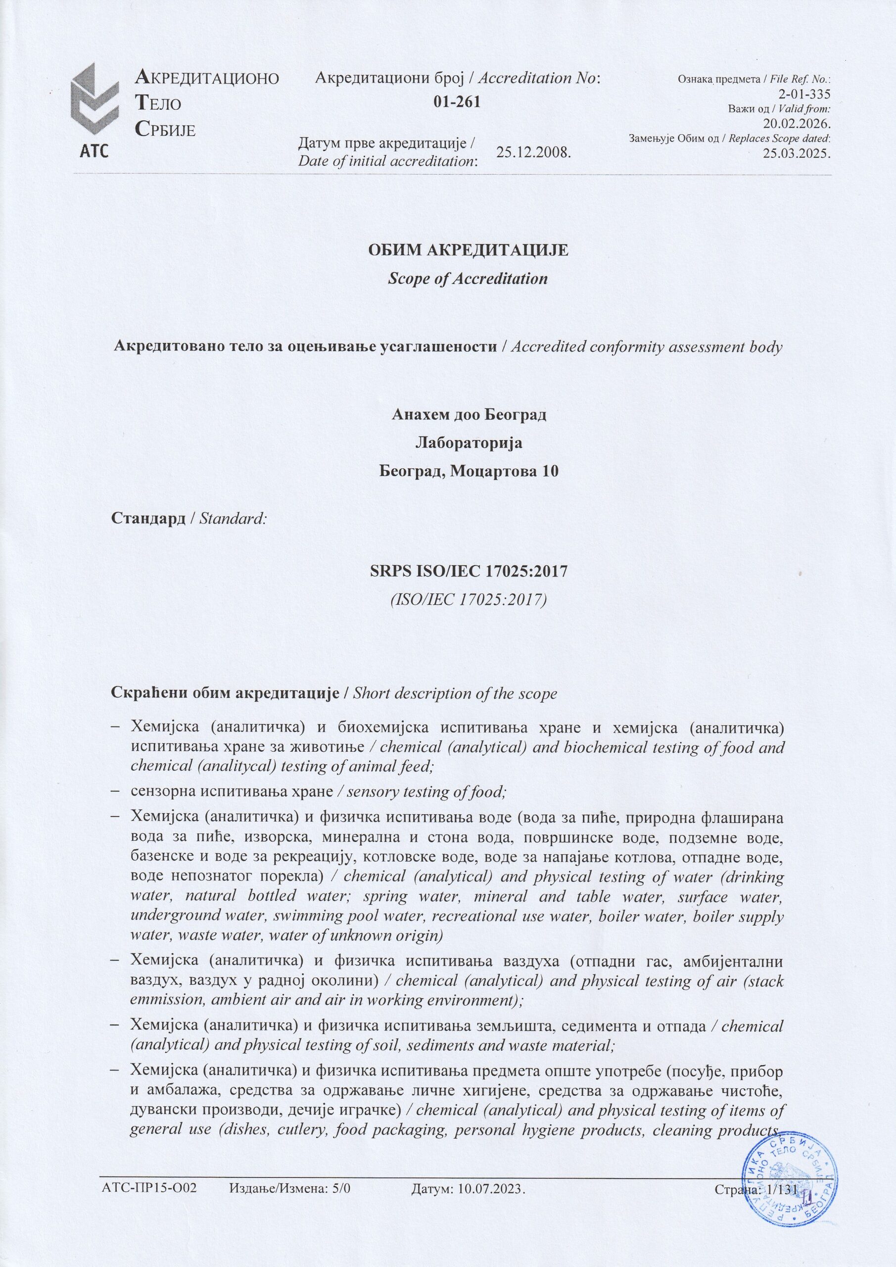 Laboratorija Anahem se trudi da ide u korak sa najnovijim svetskim trendom u očuvanju životne sredine, tako što neprestalno ulaže u najmoderniju opremu za ispitivanje parametara životne sredine i obuku svojih zaposlenih.
